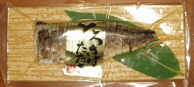静岡県沼津市内のスーパー | 398 | 2004 | 8 | 22 | S | とても大きな鯖を使っています。とにかく身がブ厚い。当然生っぽい感じも強く、脂ものっています。当初、脂がきつ過ぎるのではないかと思っていましたが、意外とひつこくなく、楽しめました。 その割に値段も安価であるところは、素晴らしいです。 |