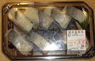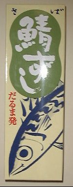 名古屋駅コンコース | 1200 | 2001 | 8 | 30 | B | 真空パックにそのまま入っています。プラスチックのナイフがついており、自分で切って食べるものです。 しゃりの味は、いいのですが、鯖そのものが絞めすぎて残念です。 |